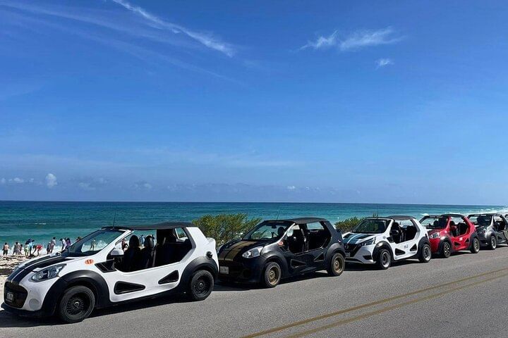 Explore the Mayan legacy EN a unique adventure on wheels POR Cozumel. Hop on a convertible buggy and tour the island until you reach San Gervasio, DE island’s most important archaeological area, where you will learn the secrets of the goddess Ixchel with the Guide DE a bilingual expert. Refresh the road with cold beers and DE water, and continue the experience with an unforgettable snorkel on Skyreef, where you will discover the marine life of the Caribbean. Enjoy an authentic artisan tequila tasting, and enjoy a lunch included in the tour. History, culture, adrenaline and taste... all EN one unforgettable day in Cozumel!